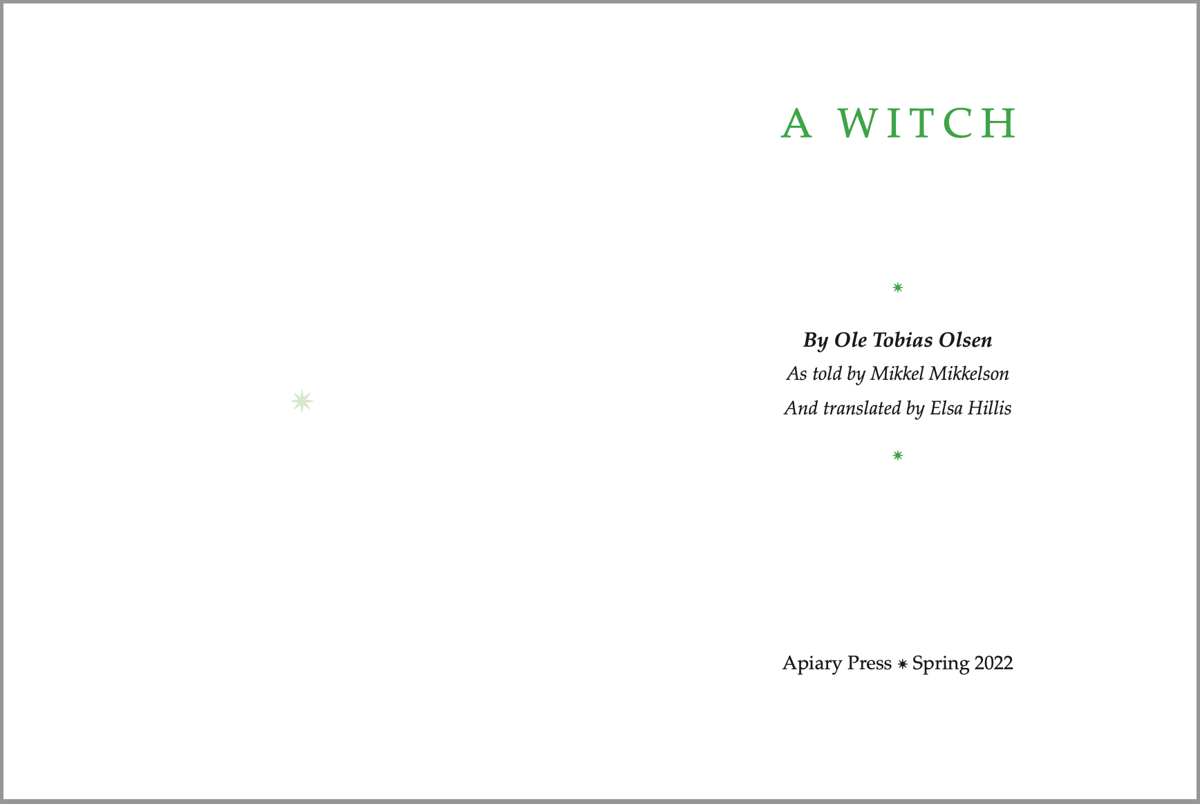 Excerpts from "A Witch", capstone project in book design and translation, Spring 2022.
